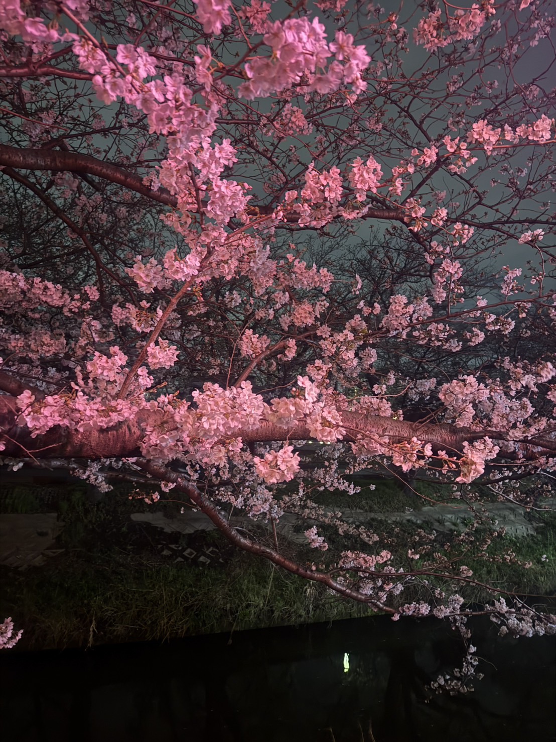 海老川の桜は夜もライトアップされているのでとってもきれいで、